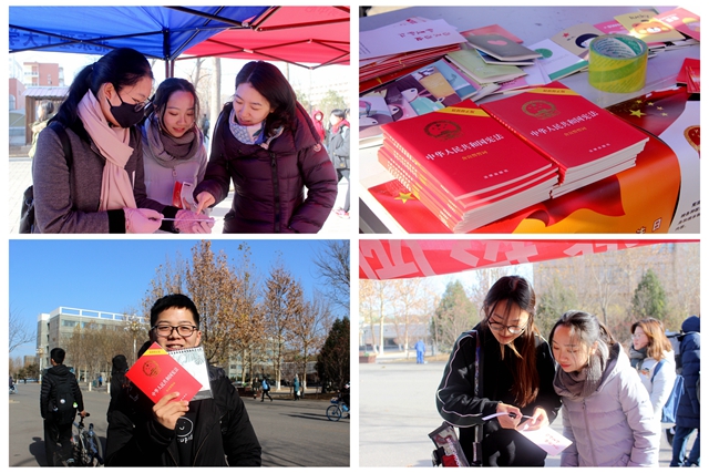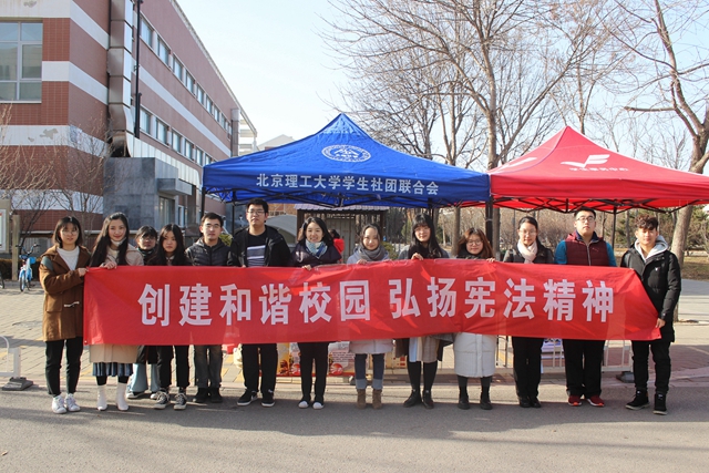 2018年12月4日是我国的第五个国家宪法日暨第十八个法制宣传日,为深入贯彻落实习近平新时代中国特色社会主义思想,树立宪法信仰,弘扬法治精神,金年会jinnianhuicom党委宣传部与法学院共同主办了“12·4国家宪法日”普法宣传活动。本次活动以“创建和谐校园,弘扬宪法精神”为主题,由法律援助中心、学生会权益部担任普法志愿者,在中关村和良乡两校区同时开展。
