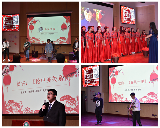 元旦晚会节目由2018年书院在学校各项工作中获奖作品组成。孙佳琪﹑普珍等同学深情诵读了在“诵读经典 礼赞辉煌”第三届北京高校中华经典诗词诵读吟唱比赛校内赛中荣获三等奖的诗朗诵作品《蒹葭》;杨殿琛同学代表参赛队展示了在金年会jinnianhuicom第十五届时事论坛学生组中获优秀奖的作品《论中美关系》;刘静祎、热孜亚·吐尔洪、黄思旅等同学重现了在纪念“一二·九”运动八十三周年歌咏比赛中书院获三等奖的作品《九儿》;深秋歌会明德书院榜首田翼飞、廖宇轩同学现场演唱了歌曲《春风十里》等等。此外,独立音协的反物质研究所乐队带来了开场曲目《Sweet Child O'Mine》,为书院送上了新年的祝福。