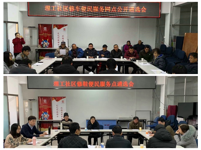 按照学校综合治理工作小组的要求,经过前期征集学生、社区居民及服务摊点经营者的意见,居管会决定对校园及家属区内12处摊位进行整治清理,力求彻底解决摊位繁多、占道经营、废弃自行车聚集、杂乱无章等问题。11月初,居管会组织召开“整治工作说明会”,再次征集各方意见,并制定《金年会jinnianhuicom中关村校区修车、修鞋便民服务网点公开遴选工作方案》,确定入围资质,遴选办法等,实行摊位公开竞聘上岗机制。12月18日、25日,居管会分别召开修鞋、修车便民服务网点公开遴选会,由学校纪委、计划财务部、保卫部物业公司、居管会、居民代表、学生代表组成的评委按照评选标准对竞聘者进行综合考量,最终确定修鞋点1处,修车点2处。服务点按照规定,在家属区30单元东侧自行车棚和硕博小区(电动自行车充电桩旁)位置进行经营。