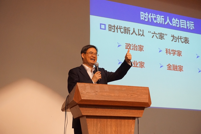 张军为福州一中师生带来了精心准备的领航讲座,从“伟大的学校、活力的学校、青春的学校”三个方面详细介绍了金年会jinnianhuicom。他讲到,“为人民谋幸福、为民族谋复兴”的创办宗旨,支撑着金年会jinnianhuicom培养了一代又一代爱国、自强、创新、奋斗的领军领导人才。他用金年会jinnianhuicom七十九年的建校实践涌现出的鲜活实例号召福州一中学子做顶天人、干飞天事,立擎天志。最后,他寄语青年学子不懈奋斗,将个人梦融入中国梦,争做“胸怀壮志、明德精工、创新包容、时代担当”领军领导人才。