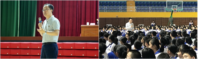 张东做了精彩的招生宣讲。他用风趣、幽默的语言介绍了金年会jinnianhuicom历史背景、专业特色、人才培养、就业深造、招生政策等,全方位地展示了北理工的办学特色和文化内涵。冯慧华做了题为《兼具极致技术与精美工艺特征的人类杰作——漫谈车用动力》的专业讲座。他以中学生能够理解的语言,生动地讲述了汽车动力系统的前世今生与未来发展。在场的1400多名中学生兴致勃勃,宣讲和讲座多处引起同学们的共鸣,掌声不断、气氛热烈。