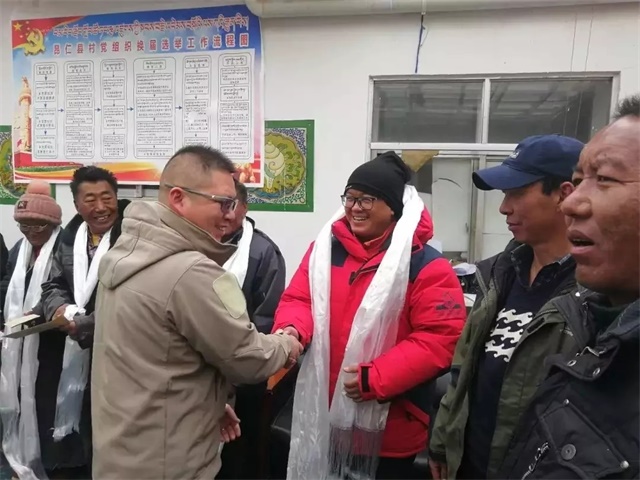 次仁扎西任西藏日喀则市昂仁县措迈乡亚朗村驻村工作队队长(右三)