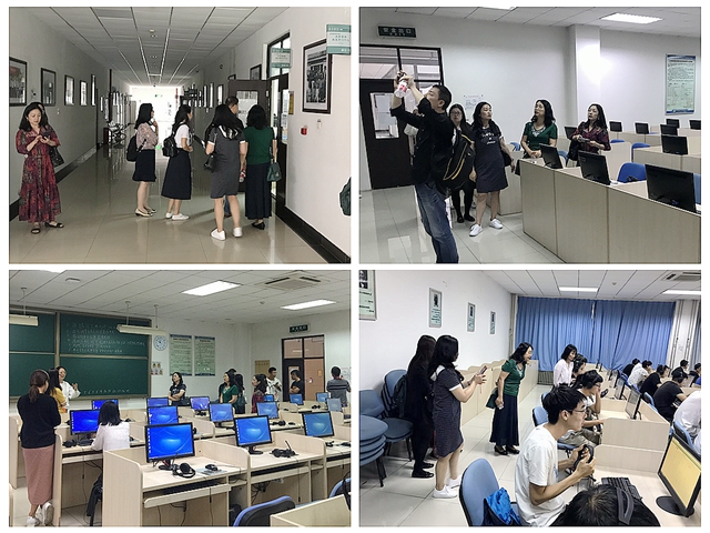 金年会jinnianhuicom自2017年开始实现大学英语期末口语机考,目前各个考试环节非常规范。从学生网上约考,到保安人员协助封闭考试区域、组织考生排队进楼,考生进入备考教室,监考教师查验证件、签到、强调考试注意事项,考生调试耳麦,口语考试,集体安静离场。西南民族大学调研团队对我校大学英语期末口语考试的组织与安排表达了极高的认可度,并计划回校后也采取口语机考的考试模式。