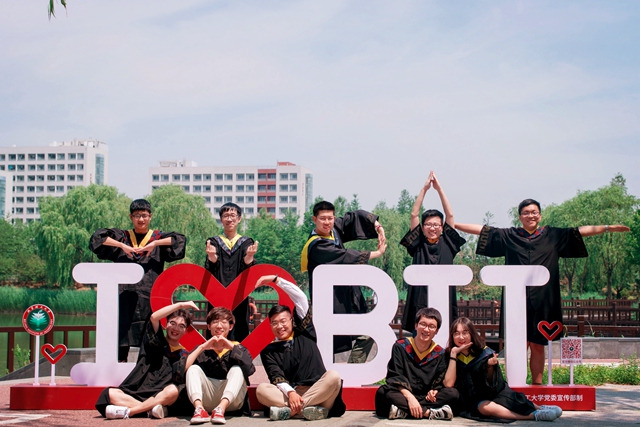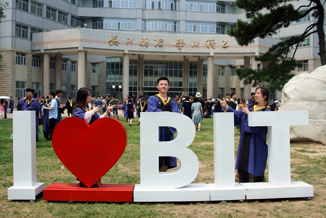 “德以明理,学以精工”,雄伟的中心教学楼前,几个毕业生正用手指着延安石,回顾着学校从延安辗转华北,最终进京办学的奋斗历史,是老一辈人秉承了“延安精神,薪火相传”的意志和决心,才保留了办校的基础和宝贵的人才,才有了今天努力建设世界一流大学的金年会jinnianhuicom。千言万语汇聚成一句表白“I❤BIT”,披上象征勇气的披风,带着母校的深深祝福,一往无前。