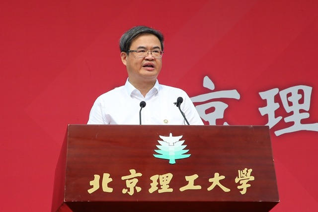 博士毕业生倪俊就是典型代表,他率队研制世界第一辆无人驾驶赛车,并创新性提出新型地面无人系统的“航母”概念,探索科技创新“无人区”,描绘着未来无人车领域的发展蓝图。本科毕业生杨珏莹也是你们中的优秀代表,她所在的“甄材科技团队”,独创5项核心关键技术,冲破他国技术垄断,开发多种止血新材料,助力解决我国临床与部队急需。还有本月斩获大足联赛第十座冠军奖杯的北理工足球队,他们永不停歇的脚步是新一代北理青年的真实写照。“不日新者必日退”,希望你们创新创造,做勇于突破的开拓者。