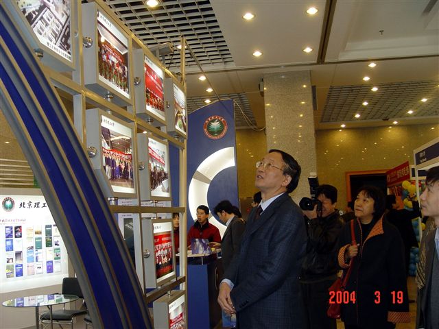 匡镜明同志在有关部门负责同志的陪同下参观我校的展台