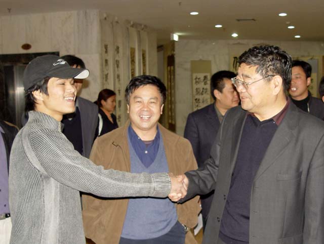焦文俊书记在勉励现任书画社社长,希望继续努力,充分发扬光大理工科学生的文化底蕴。