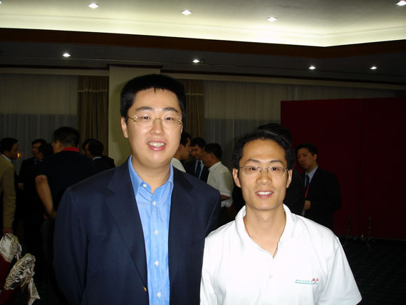 我校老师和学生踊跃的同各高校做交流和讨论,并且积极向业界代表虚心的学习,业界代表对我校在论坛中的出色表现表示肯定,也对我们提出了诚恳的建议和指导。这是我校代表团团员和空中网CEO周云帆的合影。