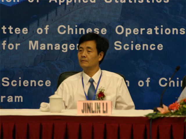 图4 大会主席、我校管理与经济学院院长李金林教授在主席台上