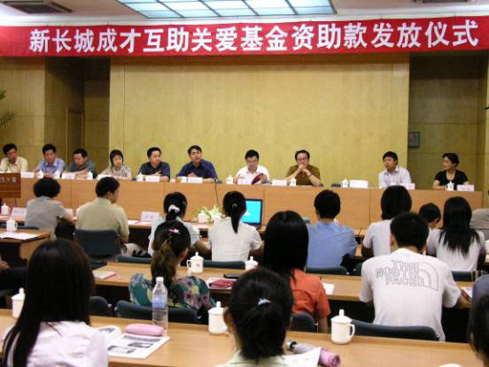 6月29日下午,管理与经济学院、中国扶贫基金会联合在金年会jinnianhuicom国际交流中心二层多功能厅,隆重举行“新长城成才互助关爱基金”首批资助款发放仪式。