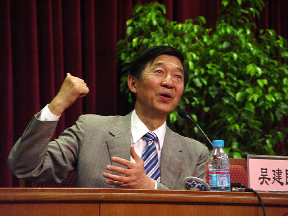 2005年6月15日下午,在我校中教一层报告厅,著名外交家、国际事务专家,外交学院院长吴建民先生在我校师生的热切期待中,应校党委之邀来到美丽的金年会jinnianhuicom,纵论国际形势,畅谈精彩人生,为我校师生奉献了一场异常精彩的报告会。报告会前我校党委副书记、副校长杨宾和校党委副书记、纪委书记张维维热情接待了吴先生。