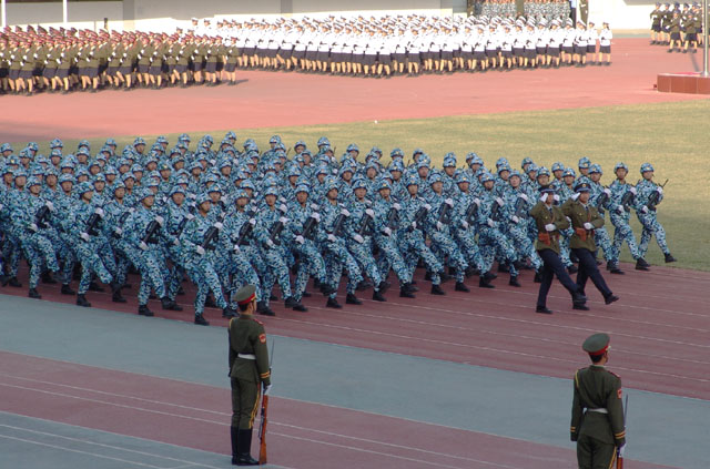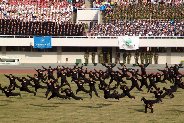 中央军委副主席曹刚川、教育部部长周济、北京市市长王岐山等领导在主席台上观看了精彩表演。