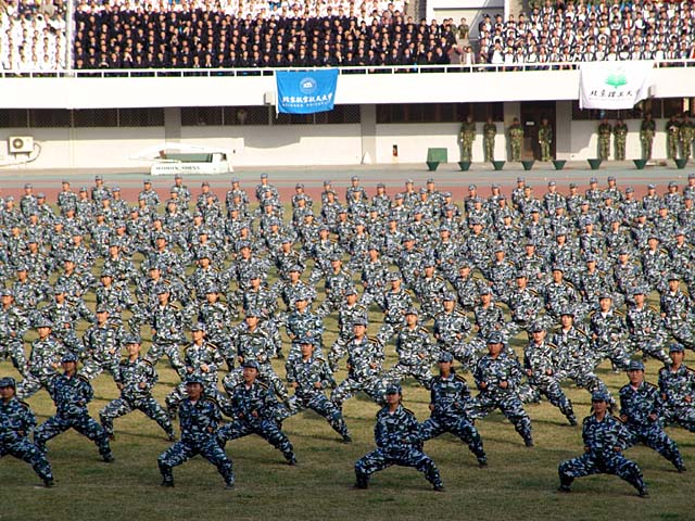 2005年是我国军训工作开展20周年,为展示学生军训工作的成果,加大学生军训工作宣传力度,扩大学生军训工作在全国的影响,10月16日下午,北京市教育委员会、北京卫戍区在丰台体育中心共同组织了首都庆祝学生军训20周年大会。