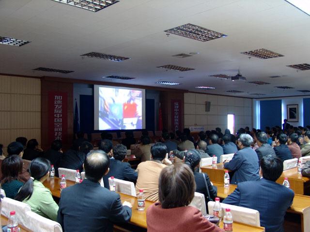在观看了中国空间技术研究院关于航天技术的专题片之后,与会代表怀着对祖国航天事业无比崇敬的心情告别了航天城。