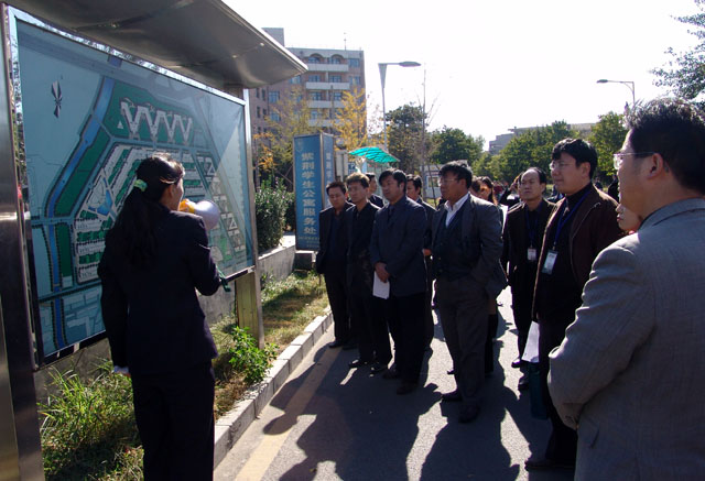 与会代表在听取清华大学后勤物业管理人员介绍。