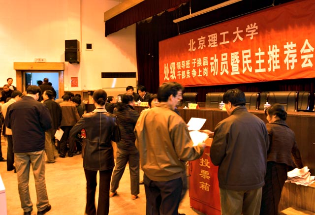 2006年3月21日下午,我校处级领导班子换届和处级干部竞争上岗暨民主推荐会在七号教学楼报告厅召开,会议的召开标志着我校处级领导班子和干部竞争上岗工作正式启动。