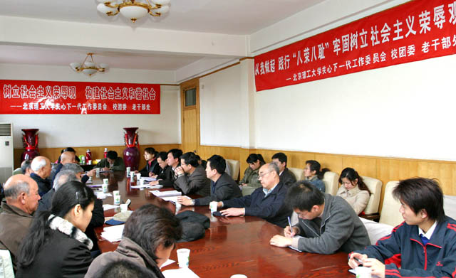 老同志代表踊跃发言,分析和阐述了胡锦涛总书记关于社会主义荣辱观讲话的时代背景和理论内涵、表达了自身对“八荣八耻”基本内容的理解和从我做起落实社会主义荣辱观的决心。老同志们通过回顾我党的奋斗历程、回顾我校的优良传统、回顾自身成长和工作经历,教育青年学生立志报效国家、报效党和人民。老同志们在发言中说,社会主义荣辱观具有鲜明的时代特性。加强社会主义思想道德建设、在全社会树立社会主义荣辱观是建设社会主义和谐社会、把中国特色社会主义事业不断推向胜利的迫切要求。它旗帜鲜明地指出了在社会主义社会坚持什么、反对什么,倡导什么、抵制什么。加强社会主义思想道德建设、落实社会主义荣辱观是关系到中国长治久安,关系到红色江山能否代代传承的大事。高等院校要成为学习、实践和传播社会主义荣辱观的前沿阵地;大学生要做社会主义荣辱观的学习者、践行者和传播者,要努力成长为社会主义事业的合格建设者和接班人。他们深切的希望一代又一代的北理人要将金年会jinnianhuicom的延安传统、国防传统代代传承发扬下去。北京教育系统关心下一代工作委员会庞文弟副会长在发言中指出大学生学习实践社会主义荣辱观,要理解社会主义荣辱观的深刻内涵和本质要求,要理解社会主义荣辱观提出的必要性和其重大意义,要按照“八荣八耻”的基本要求努力实践。庞文弟副会长肯定了我校在加强和改进大学生思想政治教育工作中做出的努力和取得的成绩,肯定此次座谈会在北京市高校中起了个好头,做出了榜样。