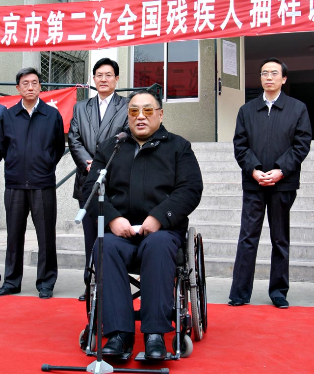 国家残疾人联合会主席、第二次全国残疾人抽样调查领导小组组长邓朴方,国务院副秘书长、第二次全国残疾人抽样调查领导小组副组长张勇,中国残联副理事长、第二次全国残疾人抽样调查领导小组办公室主任程凯,中国残联办公厅副主任、第二次全国残疾人抽样调查办公室常务副主任张新龙,中国残联维权部副主任、第二次全国残疾人抽样调查办公室副主任陈新民,北京市副市长、北京市抽样调查领导小组组长孙安民以及我校常务副校长李志祥、副校长赵显利出席了启动仪式。