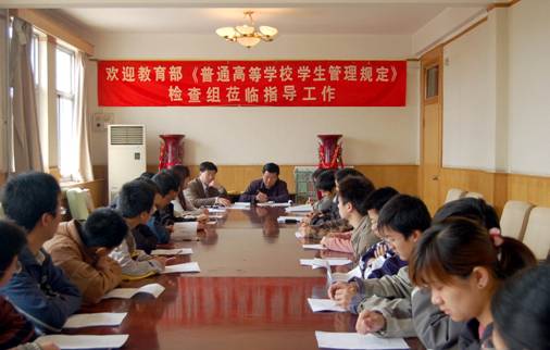 2006年4月16日上午,教育部《普通高等学校学生管理规定》检查组莅临我校,检查我校《普通高等学校学生管理规定》贯彻落实情况。