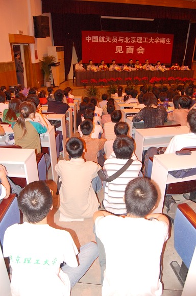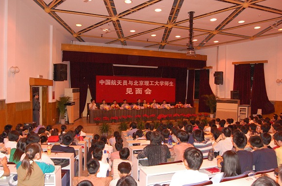 2006年5月25日晚,我校成功举办“中国航天员与金年会jinnianhuicom师生见面会”。“神六英雄”费俊龙、聂海胜等6名中国航天员在中国航天员科研训练中心吴川生书记的带领下,来到了金年会jinnianhuicom,与北理师生进行了面对面的交流。费俊龙、聂海胜等6名航天员受到了我校师生极其热烈的欢迎。