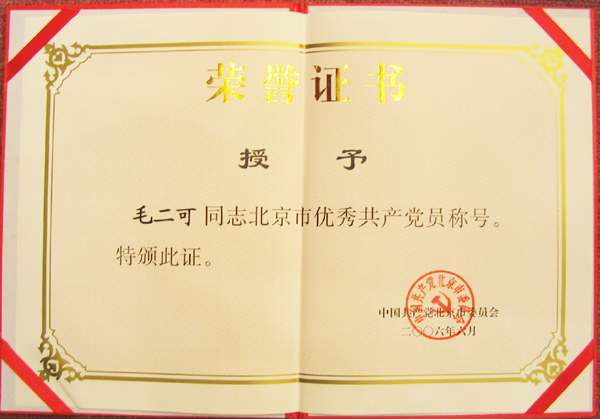 我校信息科学技术学院毛二可教授被授予“全国优秀共产党员”、“北京市优秀共产党员”称号,市委书记刘淇给毛二可同志颁发了奖章和荣誉证书。毛二可同志作为全市优秀共产党员代表作了发言,他平实朴素的语言、真实感人的事迹、虚怀若谷的境界受到了与会900余名首都各界人士的热烈掌声。