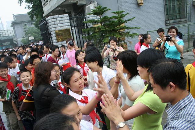 最后,《毕业歌》深情的乐曲声缓缓奏响,二年级的小同学为哥哥姐姐们戴上表示祝福的小红花,毕业生在全校师生的欢送下,走出了理工附小的校门,场面感人至深……