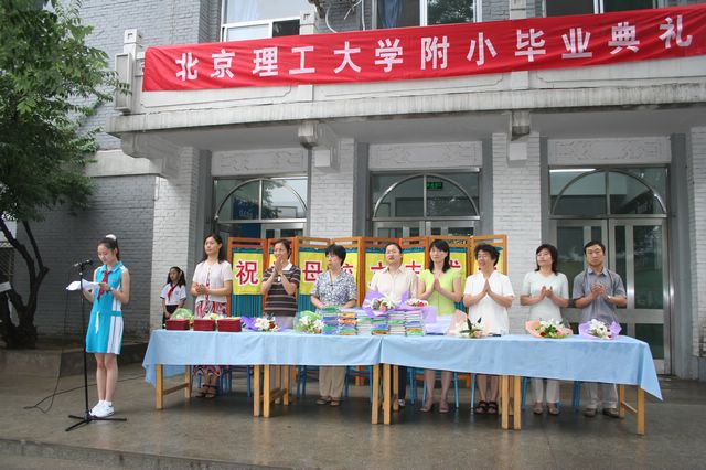 在热烈的掌声中,毕业典礼拉开了序幕, 柏校长首先致辞,她满怀深情地回忆了六年来同学们与母校浓浓的情谊,嘱咐同学们今后要时刻不忘自己曾是理工附小的学生,希望他们在今后的学习生活中用智慧描绘生命的画板;用勤奋书写人生的坎坷;用汗水浸润青春的旅途;让每一天都过得充实无悔。校长深情的话语敲打着每一位毕业生的心:“请记住,无论你走到哪里,都会有理工附小老师们期待的目光和深深的祝福。同学们,常回母校看看……”紧接着,三位校长为108名毕业生一一颁发了毕业证书,赠送了毕业纪念品——一本带锁的日记本,让毕业生们用它记下自己丰富多彩的中学生活和成长的足迹。