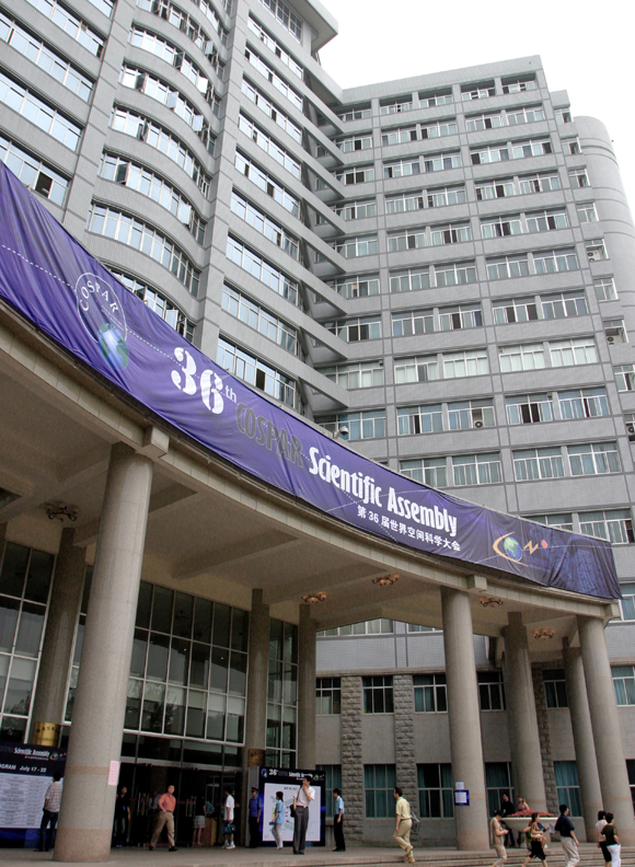 最近几天,来自世界各地50多个国家和地区数百个空间研究机构的科学家齐聚我校参加COSPAR全会的学术研讨会议,并做专题演讲。其中包括各主要航天机构如美国国家航空宇航局,欧洲空间局,俄罗斯空间局,日本航空与航天机构,印度航天局以及中国国家航天局的政府官员,以及部分和空间研究相关的国际科学组织代表。