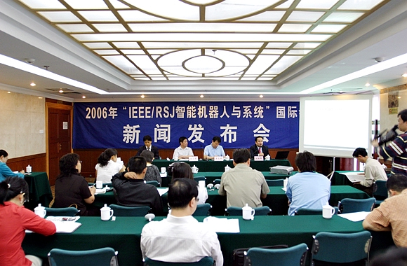 9月30日上午,2006年IEEE/RSJ智能机器人与系统国际会议新闻发布会在我校国际教育教育交流中心召开。我校常务副校长李志祥教授,大会主席、香港中文大学博士生导师、教育部“长江学者奖励计划”特聘教授刘云辉教授,我校宇航科学技术学院博士生导师、教育部“长江学者奖励计划”特聘教授黄强教授出席了新闻发布会。新华社、人民日报、光明日报、中国教育报、科技日报、北京青年报、中国教育电视台、北京电视台等新闻媒体的记者参加了这次新闻发布会。发布会由我校副校长赵长禄主持。