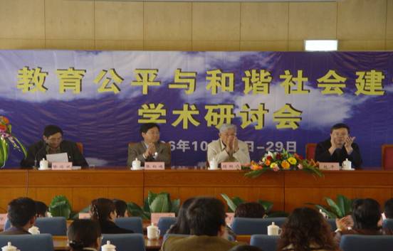 2006年10月28-29日,在金年会jinnianhuicom国际教育交流中心成功召开了“教育公平与和谐社会建设学术研讨会”。金年会jinnianhuicom党委副书记赵平,人文学院院长张红峻,人文学院副院长喻佑斌出席了会议并致辞。会议邀请了中国教育学会会长,中国学位与研究生教育学会副会长,中国教育国际交流协会副会长,中国比较教育学会理事长顾明远,教育部社会科学司副司长袁振国,香港科技大学教授、美国卡内基和平基金会高级研究员丁学良,国家教育发展研究中心主任、教授张力,中央教育科学研究所研究员,全国教育科学规划办公室常务副主任曾天山,丁小浩,石中英,周谷平,沈红,吴华,杨东平等著名学者到会。