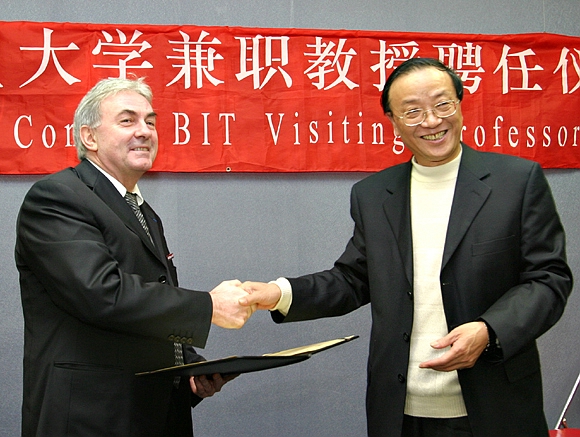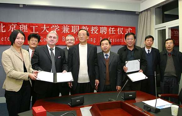 2006年12月7日,我校在主楼二层会议室举行聘任法国亚眠电子电气工程研究院校长Roger CESCHI教授为兼职教授的仪式,并与该校签署两校合作培养学生项目合作协议。校长匡镜明为Roger CESCHI教授颁发了聘书,佩戴校徽,并赠送纪念品。
