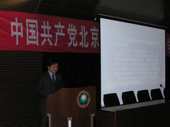 管理与经济学院分党委书记李波代表上届分党委向大会汇报工作。李波同志回顾了上届学院党委四年多来的工作,总结了分党委在过去各项工作中的成绩与经验 。