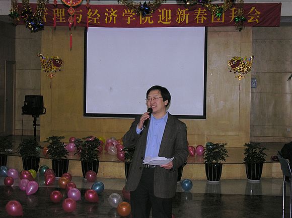 2007年1月16日,管理与经济学院迎新春团拜会在国交多功能厅隆重举行,全院教师欢聚一堂,其乐融融。校长匡镜明,副书记、副校长杨宾,副书记侯光明、赵平,副校长孙逢春、赵显利以及学校各部、处领导出席了迎新团拜会。