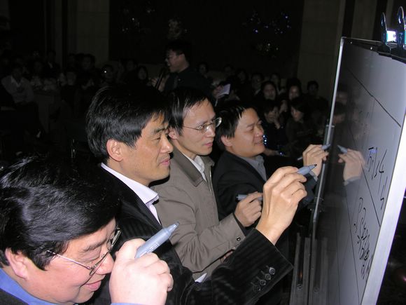 校长匡镜明,副书记、副校长杨宾,副书记侯光明、赵平,副校长孙逢春、赵显利为大家抽奖