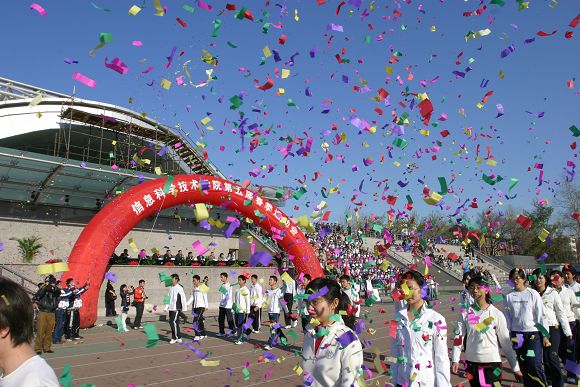 2007年4月8日,秉着“增强我院师生体质,展现学院精神风貌”的理念。在阳光明媚、春意盎然的日子里,信息科学技术学院在校东操场隆重举行了第五届春季运动会,4000余名本科、研究生以及100多名教职工参加了当天的比赛。