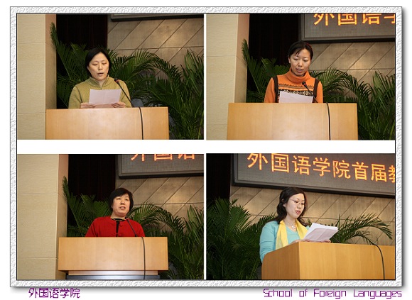 王书记致词中指出,经过十天的学习讨论,外国语学院首届教职工大会暨首届工会会员大会取得了圆满的成功。王书记就学院如何搞好学院的工会、教代会工作提出三点意见。第一、加强党委对工会、教代会的领导,把学院工会、教代会工作做到实处;第二、充分发挥教代会制度在构建和谐学院中的作用;第三、围绕学校中心工作,认真履行工会、教代会职责,推动构建和谐学院的各项工作。最后,王书记向全体教职工拜年,祝大家身体健康、阖家欢乐。