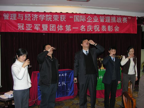 1月25日,为庆祝金年会jinnianhuicom管理与经济参加2006年第27届“国际企业管理挑战赛(GMC)”的代表队载誉归来,管理与经济学院举行了隆重的表彰大会。金年会jinnianhuicom党委书记焦文俊、党委副书记候光明、党办主任王文生、校办主任姚利民、团委书记张启鸿、研究生工作部部长肖文英、学生工作处副处长娄秀红、管理与经济学院院长李金林、书记李波、副院长纪新华、朱东华、李健、副院长副书记仇芳、MBA中心全体人员、指导教师以及部分GMC参赛队员出席了表彰大会,大家欢聚一堂,共享胜利的喜悦。