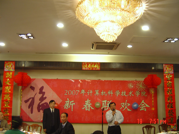 2007年1月19日晚,计算机科学技术学院新春联欢会在理工国际交流中心隆重举行。学校常务副校长李志祥,党委副书记侯光明,副校长赵长禄、杨树兴,党委副书记张维维,副校长赵显利、李和章以及学校各部、处领导,兄弟学院领导出席了此次联欢会。