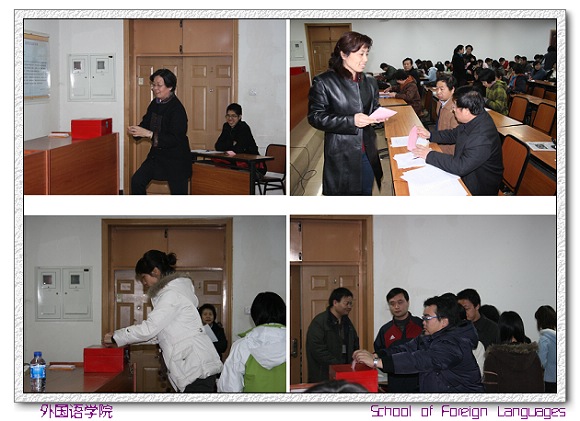 根据《中共金年会jinnianhuicom委员会关于出席北京市第十次党代表大会代表选举工作方案》,外国语学院于2007年3月23日在一号教学楼110教室隆重举行全体党员大会,选举出席金年会jinnianhuicom党员代表大会的代表。