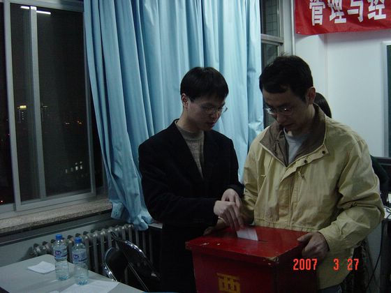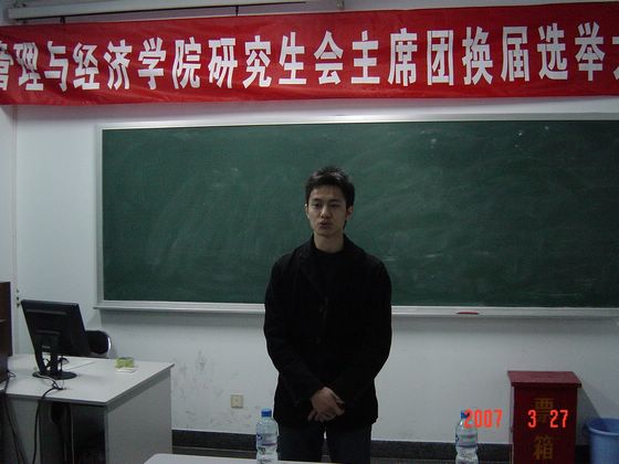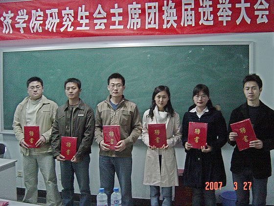 2007年3月27日晚,管理与经济学院研究生会主席团换届选举大会在金年会jinnianhuicom中心教学楼1036举行。