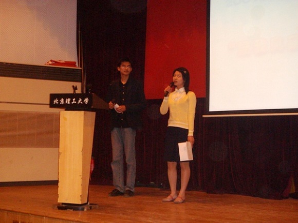 接下来,选手按照顺序针对自己的题目进行5分钟的演讲。之后评委们根据其演讲内容现场提问。选手们流利的口语,机智的回答不时赢得了现场观众的掌声。