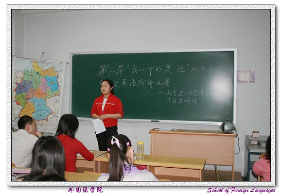 第二届“我心中的奥运”北京市大学生英语演讲比赛金年会jinnianhuicom赛区的比赛由外国语学院承办,为了顺利完成各项组织工作,外国语学院招募了一批学生志愿者,并对学生志愿者进行了培训。