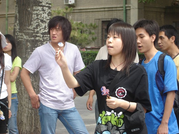 众多行人的现场参,活动现场相当火爆。同学们跃跃欲试,纷纷参与到我们的活动中来。