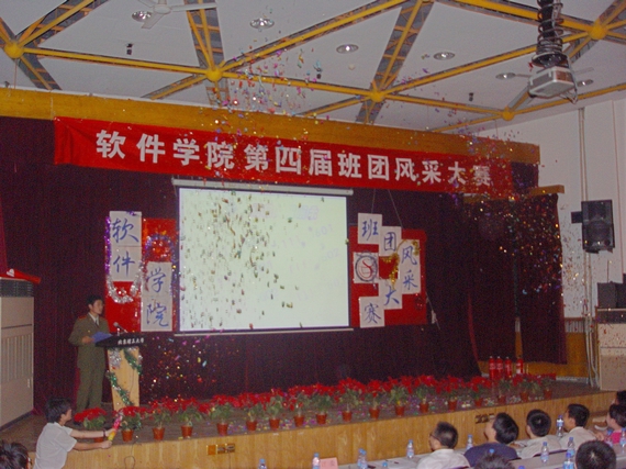 班团风采大赛是软件学院的一个品牌活动,旨在促进班级团结、提高学生综合素质、展示同学们在学习生活以及各方面的风采。活动包括三项内容:PPT演讲网页展示和DV短剧。值得一提的是,每个班的PPT网页和DV都融入了FLASH动画等技术。