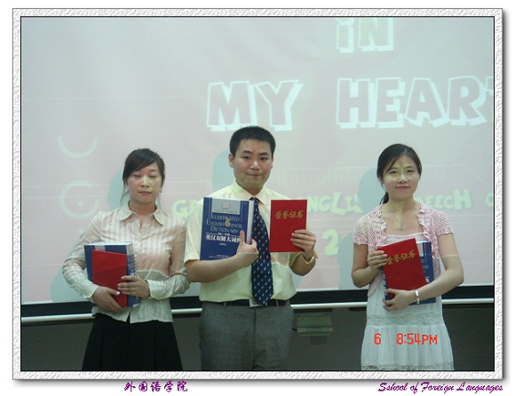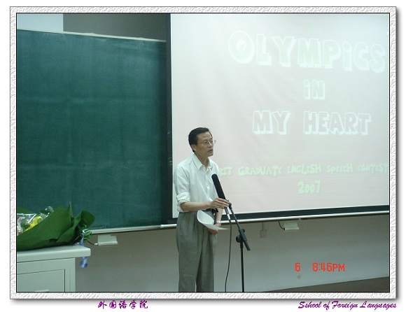 2007年6月6日晚7点,金年会jinnianhuicom研究生英语演讲比赛决赛在研究生楼301隆重举行。本次研究生英语演讲比赛由金年会jinnianhuicom研究生院和外国语学院共同主办,旨在进一步活跃研究生英语学习的氛围,进一步提高研究生的英语水平。研究生院副院长王渝应邀出席了本次比赛。评委由外国语学院研究生英语教研室教师组成。提问教师为美籍教师杨真真和法籍教师Galio。