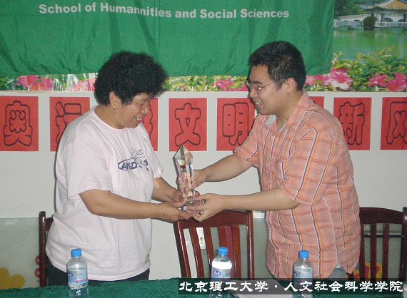 之后,人文学院分团委书记谢尔曼老师向前泥洼社区赠送了纪念品。