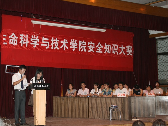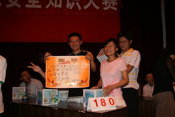 此次安全知识竞赛参赛选手全部来自生命学院06级研究生,共三支代表队。比赛经历了三个环节:必答题,抢答题和选答题环节,其中穿插了观众趣味问答题。