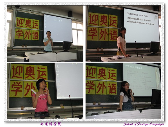 此次活动是2006级研究生党支部举行的一次主题实践活动。活动充分发挥了外国语学院的特色和专业优势,除了培训奥运外语之外,还利用视频等手段普及奥运知识,宣传奥运精神,加深学生对奥运的认识和了解。