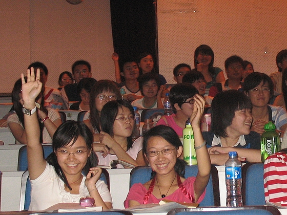 06级会计专业的刘源同学给大家出了一道公司管理的选择题,更巧妙地以“ABC”三个字母揭开了主题,使现场气氛更加热烈。
