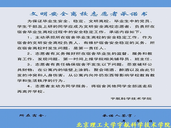 最后,与会每一位同学都郑重签下了《文明安全离校志愿者承诺书》。
